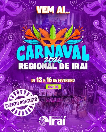 A época do carnaval chegou, e mais uma vez a prefeitura de Iraí prepara um grande evento. A edição deste ano do Carnaval Regional de Iraí será entre os dias 13 e 16 de fevereiro, e apresentará os desfiles de blocos que atravessam a cidade, espalhando alegria ao público.