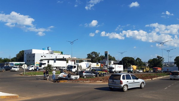 Carro capota após colisão no trevo do Serrano em FW