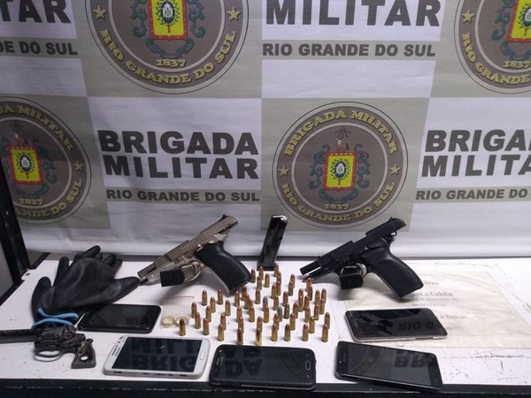 Foram apreendidas duas pistolas calibre 9 mm, 57 munições de mesmo calibre, um simulacro de revólver e celulares.
