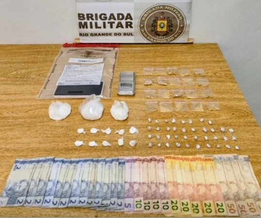 Durante a ação, foram apreendidas 13 porções de cocaína, 58 porções de crack, uma balança de precisão, um smartphone e quantia em dinheiro.