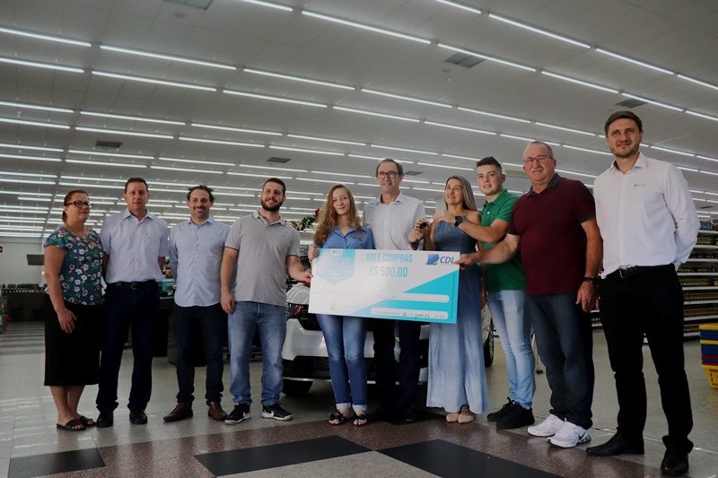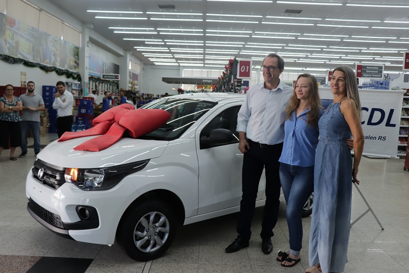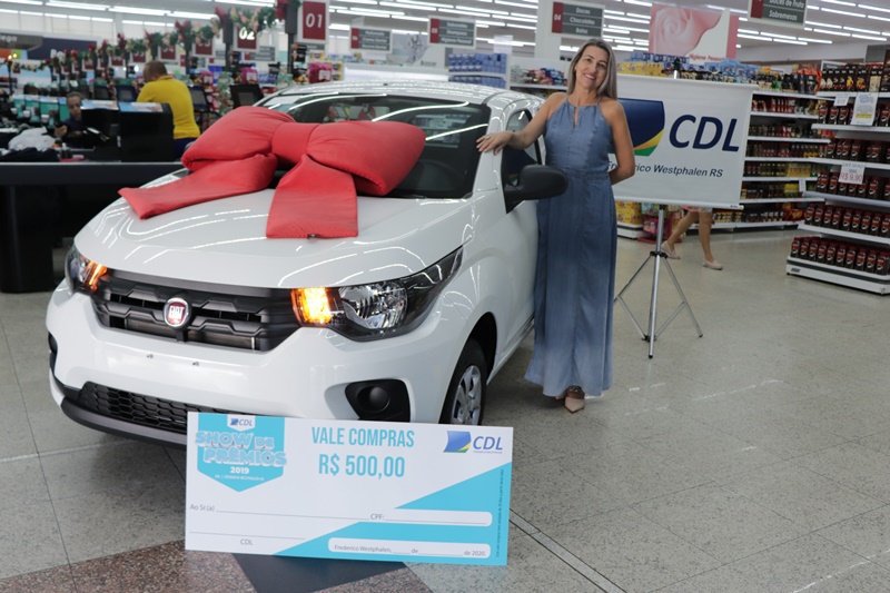 A Câmara de Dirigentes Lojistas de Frederico Westphalen realizou a entrega de um Fiat Mobi Zero km, da campanha Show de Prêmios, na manhã desta segunda-feira, 13 de janeiro. O sorteio foi realizado no dia 27 de dezembro, encerrando a programação do Frederico em Luz. A ganhadora do carro foi Ivete Almeida que comprou no Supermercado Barril, a vendedora Ana Paula Sponchiado levou um vale-compras de R$500,00.