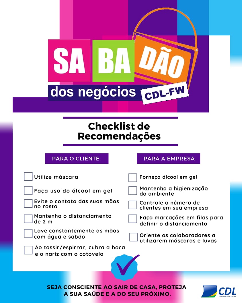 Em virtude da pandemia do coronavírus, a CDL divulgou um checklist com recomendações para garantir segurança de empresários e consumidores.