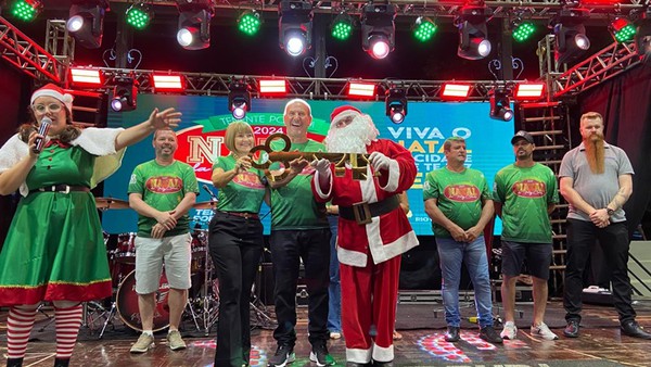 A alegria e a diversão marcaram os festejos natalinos. Um grande público se fez presente na Praça do Imigrante para acompanhar a chegada do “bom velhinho” e seus duendes. Em seguida, a banda Tchê Chaleira subiu ao palco e animou o público, interpretando grandes sucessos das músicas de bailão.