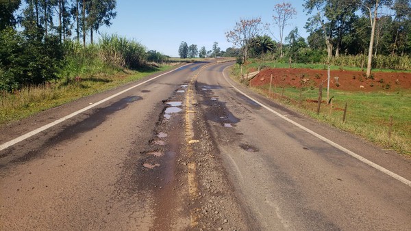 No quilômetro 15, nas proximidades da Linha Capoeira Grande ouvintes do Grupo Chiru registraram os buracos abertos na rodovia.