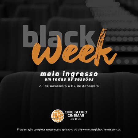 O Cine Globo Cinemas entrou no clima dos descontos da black friday mas, ao invés de fazer somente um dia de descontos você terá uma semana para ir no cinema e pagar somente meio ingresso, é a black week do Cine Globo.