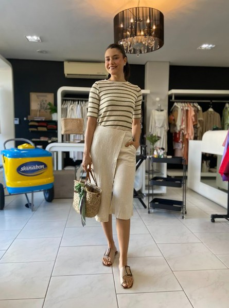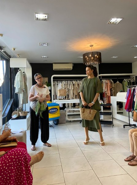 A estilista e gestora da marca, Angela Pessotto, juntamente com a costureira e modelista Melania, conduziram uma dinâmica prática com foco em soluções de vestir criadas pela Unna. As clientes tiveram contato direto com processos e propostas que valorizam diferentes estilos, fortalecendo a relação entre marca e consumidoras.