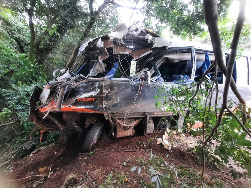 O micro-ônibus chegou a sair da rodovia e a cair em um desnível em meio à vegetação que fica às margens da pista. O veículo pertence a uma empresa de transportes de Rodeio Bonito e era ocupado por duas pessoas. No caminhão estava somente o condutor.