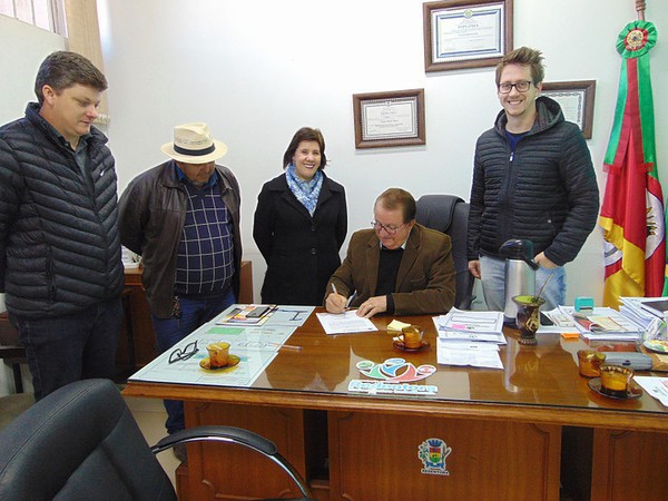 A assintatura ocorreu no dia 05 de agosto, no Gabinete, e também pelo engenheiro civil do Município, Mateus Aduati, e pelo proprietário da empresa vencedora da licitação, Gelci Gonçalves de Lima. A primeira dama Eliane Amaral Costa e o secretário Municipal de Planejamento e Desenvolvimento, Luciano Schünemann, acompanharam as assinaturas.