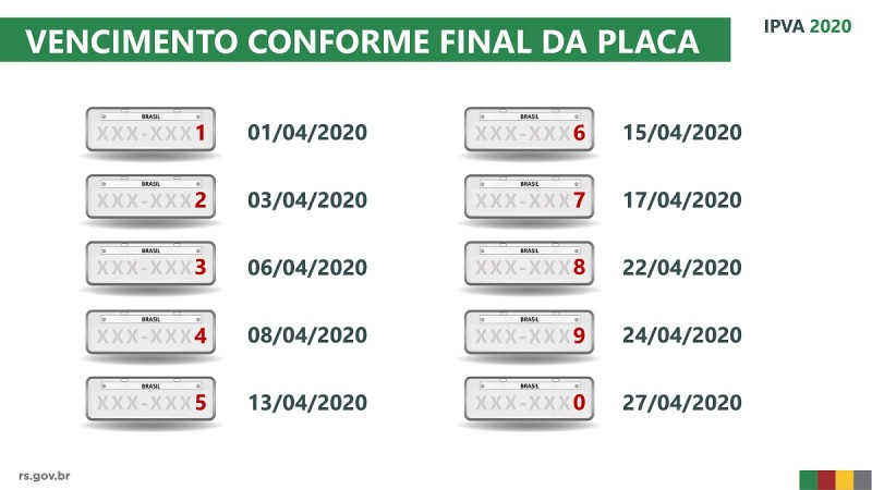 CALENDÁRIO DE PAGAMENTO PELO FINAL DA PLACA