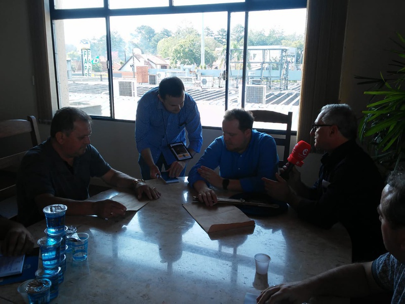 O vereador Arlei Bonafe, o presidente da associação de avicultores de Palmitinho, Renan Piaia e os empresários João Bonafé e Roni Thiesen estiveram em Esteio, na 42ªExpointer, nesta terça-feira, 27 e aproveitaram o encontro com o atual secretário da agricultura e deputado federal, Covatti Filho, para entregar uma demanda na busca por valores de emenda parlamentar para aquisição de equipamentos agrícolas.