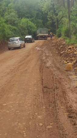 Poeira ou barro fazem parte do cotidiano de motoristas particulares ou profissionais que precisam utilizar com frequência a ERS-591, no trecho que liga o Distrito de Castelinho em Frederico Westphalen ao município de Ametista do Sul.
