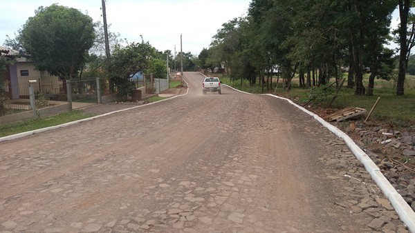 A obra de construção do calçamento (pavimentação com pedras irregulares) no trecho da estrada que liga o Distrito Industrial à linha Getúlio Vargas, em Frederico Westphalen, foi concluída.