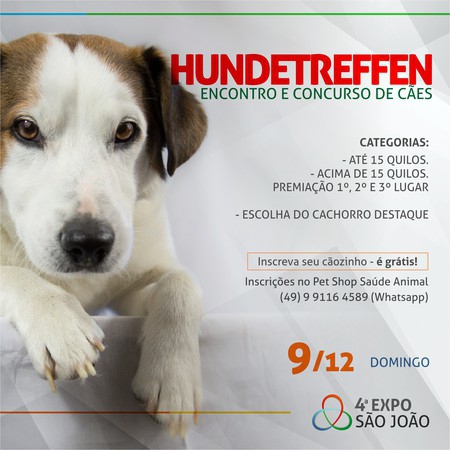 A 4ª Expo São João terá muitas atrações e novidades, que prometem movimentar São João do Oeste (SC) e a região de 7 a 9 de dezembro. Entre as inovações no Setor Agropecuário, está o Hundetreffen - Encontro e Concurso de Cães.