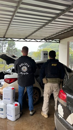 Durante uma operação conjunta de combate ao crime, Policiais Rodoviários Federais e Policiais Civis abordaram um Cronos em Planalto. Dentro do carro foram encontrados 40 galões carregados com agrotóxico contrabandeado, além de 65 quilos de agrotóxico granulado. O produto é proibido no Brasil e causa riscos à saúde humana e ao meio ambiente.