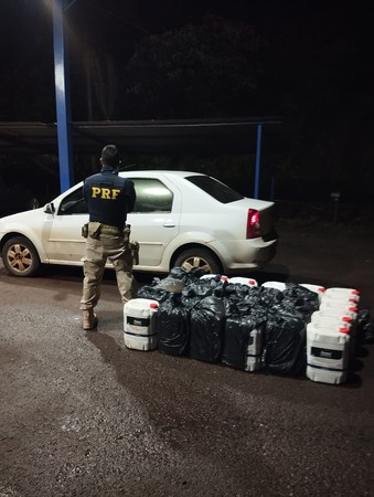 Além desse carro, os policiais também encontraram na fila uma Saveiro emplacada em Boa Vista do Buricá, que viajava junto com o Logan e tinha a função de avisar sobre a presença de fiscalização na rodovia. Os policiais encontraram no Logan 30 galões de agrotóxico, totalizando 600 litros.