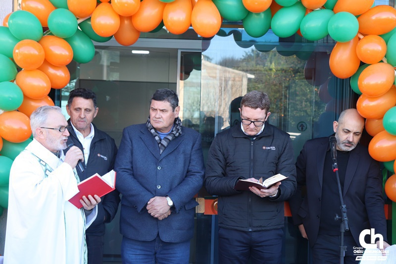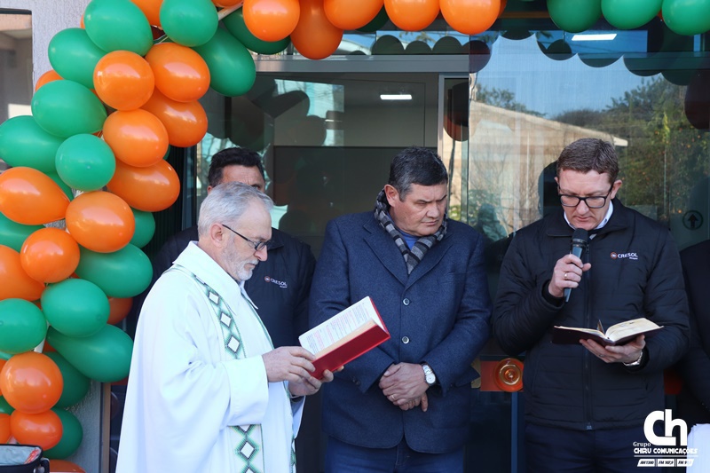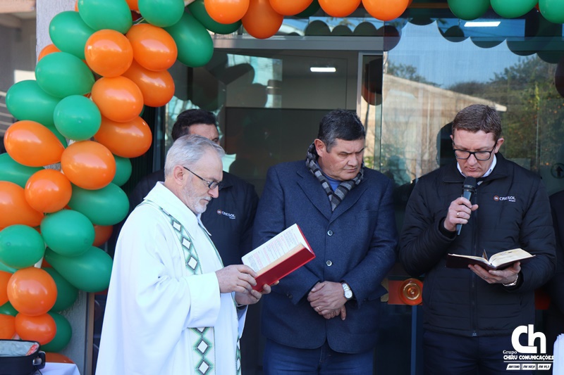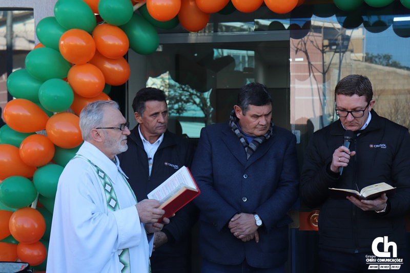 A estrutura física é de um pavimento, tem cerca de 100 m2 e terá todos os produtos e serviços Cresol. O padre Hilário Barbieri fez a benção do espaço.