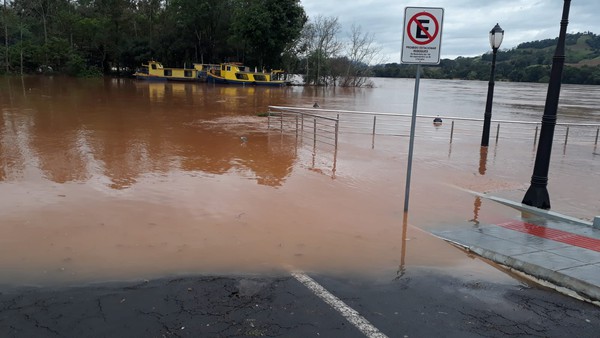Em Barra do Guarita/ Itapiranga-SC, o rio estava 11,82 metros acima do nível normal e que havia aumentado 14 centímetros em uma hora.