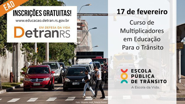 Estão abertas as inscrições para o Curso EAD de Multiplicadores em Educação para o Trânsito da Escola Pública de Trânsito do DetranRS. Na modalidade à distância, o curso tem o objetivo de capacitar educadores para atuar como multiplicadores, através do desenvolvimento de projetos e ações pedagógicas. A atividade é gratuita e conta com certificação.