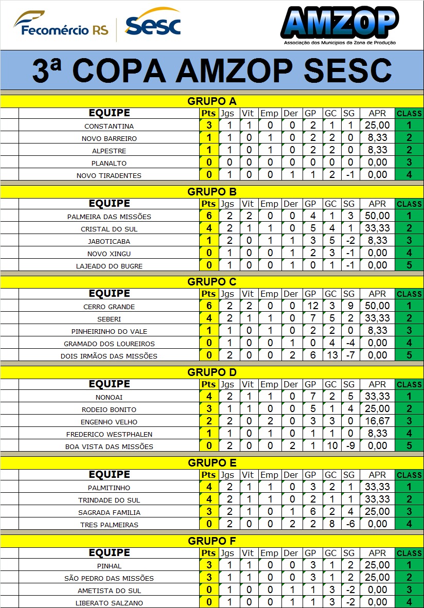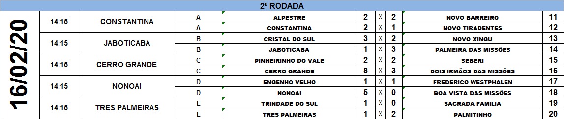 A segunda rodada do maior campeonato de futebol amador do interior do Rio Grande do Sul, a Copa Sesc/Amzop de Futebol, ocorreu neste domingo, 16 de fevereiro, em Constantina, Jaboticaba, Cerro Grande, Nonoai e Três Palmeiras.