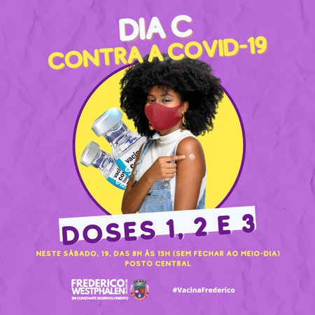 O Dia C da vacinação infantil contra a Covid-19, está marcado para sábado, 19 de fevereiro, em todo o Rio Grande do Sul. Em Frederico Westphalen a vacinação será no Posto Central das 8h às 15h sem fechar ao meio-dia e foi estendida para todos os públicos.