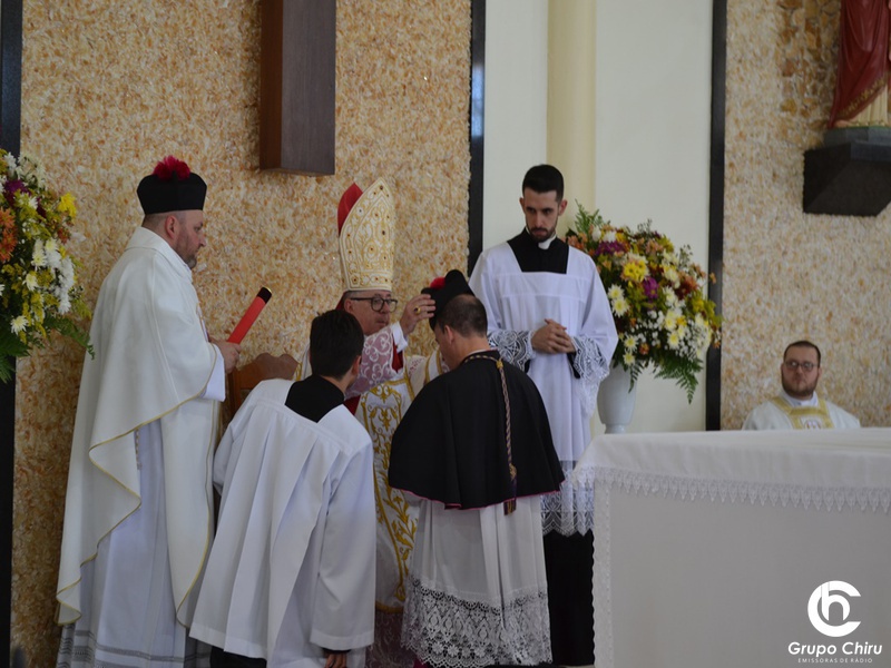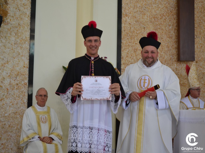 Também durante a cerimônia, que foi marcada por momentos de muita emoção, o padre Elisandro Fiametti, que é reitor do Seminário Maior de Filosofia e Teologia Beatos Manuel e Adílio recebeu o título de cônego da Catedral Santo Antônio de Frederico Westphalen.