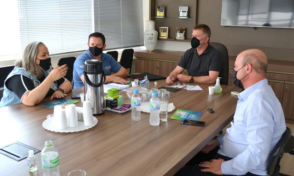 Na última quinta-feira, 2 de setembro, o presidente da Expofred 2022, Marcos Antonio Lima, e o vice-presidente da Feira, Jamil José Mezzalira, receberam o diretor do campus da UFSM/FW, Prof. Braulio Otomar Caron, e vice-diretoria, Profa. Eliane Pereira dos Santos para uma conversa na sede da Associação Empresarial de FW. A direção da Universidade buscou a Comissão Central para reforçar a parceria, disponibilidade e participação na feira, como a Rádio Feira, a realização da pesquisa de opinião, a construção dos bancos de palets para o Parque de Exposições, além de diversas outras ações que estão sendo pensadas em conjunto para promover ações através de projetos de extensão e do apoio nas comissões setoriais