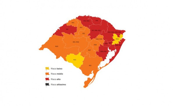 Número de regiões sob bandeira vermelha no RS aumenta de quatro para nove