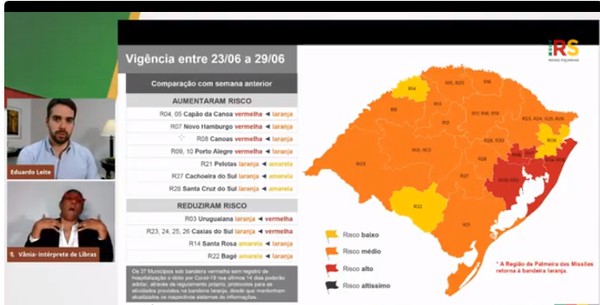 No entanto, isso não significa que, passados alguns dias, a região não possa ingressar na bandeira vermelha. Tudo vai depender da evolução dos números de novos casos e internações, por exemplo, salientou o governador Eduardo Leite. "Pelo arredondamento da média a região iria para a bandeira vermelha, porém analisando os dados em seus pormenores, consideramos que ainda há um certo nível de controle, sem uma tendência de aumento clara, que nos fez optar pela bandeira laranja na região", disse.