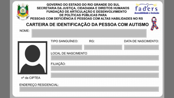 No Dia do Orgulho Autista, a Faders Acessibilidade e Inclusão passa a disponibilizar a Carteira de Identificação da Pessoa com Transtorno do Espectro Autista (Ciptea) em todo o Estado. A partir desta sexta-feira, 18 de junho, as pessoas com TEA ou seus responsáveis já podem encaminhar os documentos necessários por meio de formulário on-line no site www.faders.rs.gov.br. Nesse endereço, o usuário encontrará também uma cartilha que explica passo a passo como proceder. Os usuários da Ciptea não terão nenhum custo para obtê-la.