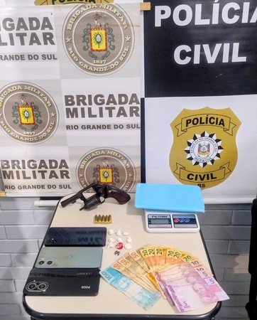 A ocorrência foi registrada no âmbito da Operação Cerco Fechado, quando a equipe da Força Tática realizou a abordagem e a busca pessoal dos suspeitos. Durante a ação, foram localizadas e apreendidas 10 porções de cocaína, um revólver calibre .38 com cinco munições, além de três aparelhos celulares, uma balança de precisão, um caderno de anotações e uma quantia em dinheiro.