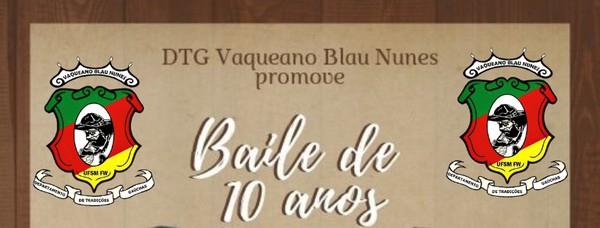 Para comemorar os 10 anos, o DTG irá realizar um baile no CTG Rodeio da Querência, no dia 9 novembro, com o Grupo Chama Crioula. O patrão do DTG, Nicolas Fin, afirma que a ideia é unir tanto o público universitário quanto o externo “estamos completando 10 anos de existência e decidimos fazer um baile em parceria com o CTG. O objetivo é unir o pessoal da faculdade e também a comunidade frederiquense. Promovendo nossa cultura e mostrando a importância do DTG dentro da universidade”.