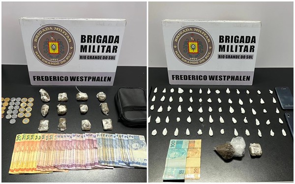 A Brigada Militar de Frederico Westphalen preendeu dois indivíduos por tráfico de drogas em Frederico Westphalen, na terça-feira, 6, um foi preso durante a amanhã e a segunda prisão foi no período da tarde, as duas prisões por tráfico de entorpecentes foram registradas em menos de 6 horas de ação da guarnição.