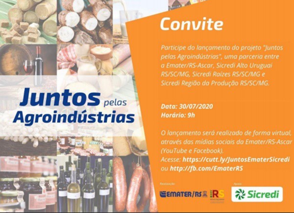 A Emater/RS- Ascar em parceria com as cooperativas Sicredi da região Médio alto Uruguai – Sicredi Alto Uruguai RS/SC/MG, Celeiro e Rio da Várzea – Sicredi Raízes RS/SC/MG e região da produção -Sicredi Produção RS/SC/MG lançam nesta quinta-feira, 30 de julho, o programa “Juntos pelas Agroindústrias”.