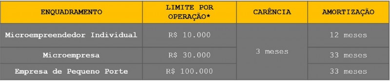 A iniciativa, que deve viabilizar a injeção de até R$ 600 milhões nas empresas gaúchas, tem o objetivo de facilitar o acesso ao crédito e fomentar a qualificação das empresas, estimulando a circulação de bens e serviços. A expectativa é de que até 23 mil operações possam ser realizadas, 20% delas destinados preferencialmente aos Microempreendedores Individuais (MEI). Confira no quadro abaixo os limites de valores e os prazos para carência e pagamento.