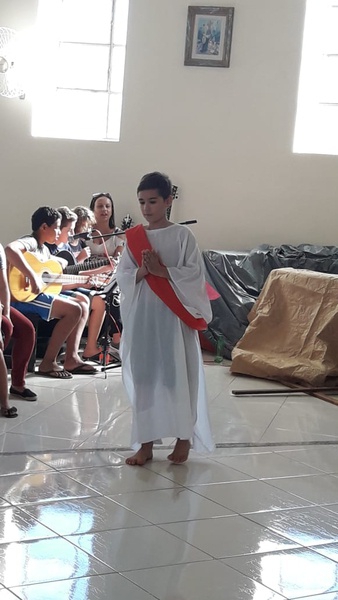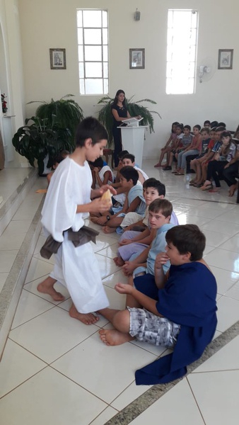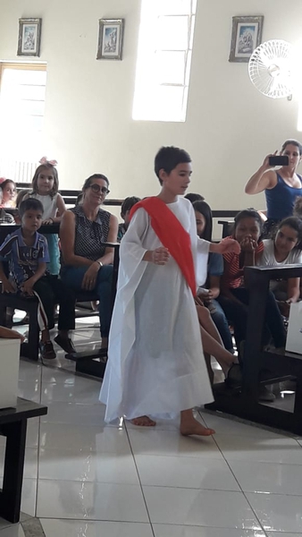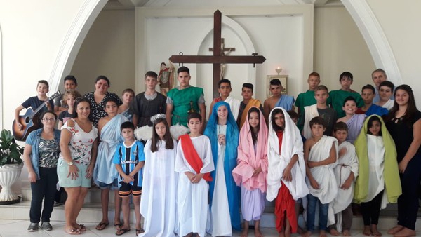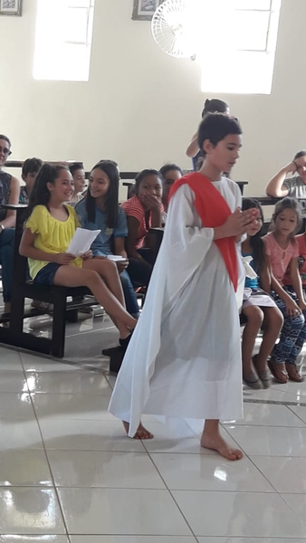 A encenação emocionou alunos, professores, pais e a comunidade que esteve presente na igreja da comunidade.