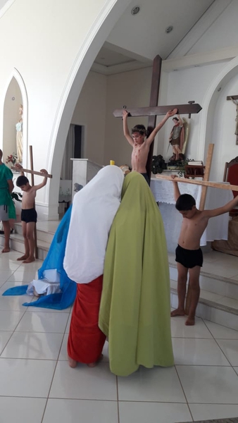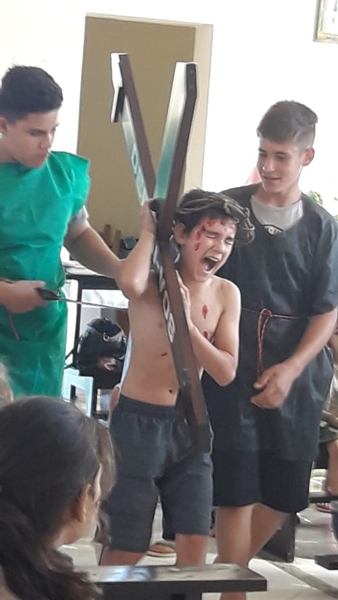 Nesse sentido e para rememorar esse momento, os alunos da Escola Estadual de Ensino Fundamental Olavo Bilac, da Linha Boa Vista, interior de Palmitinho, apresentou nesta quarta-feira, dia 17 de abril, a encenação da paixão e morte de Jesus Cristo.