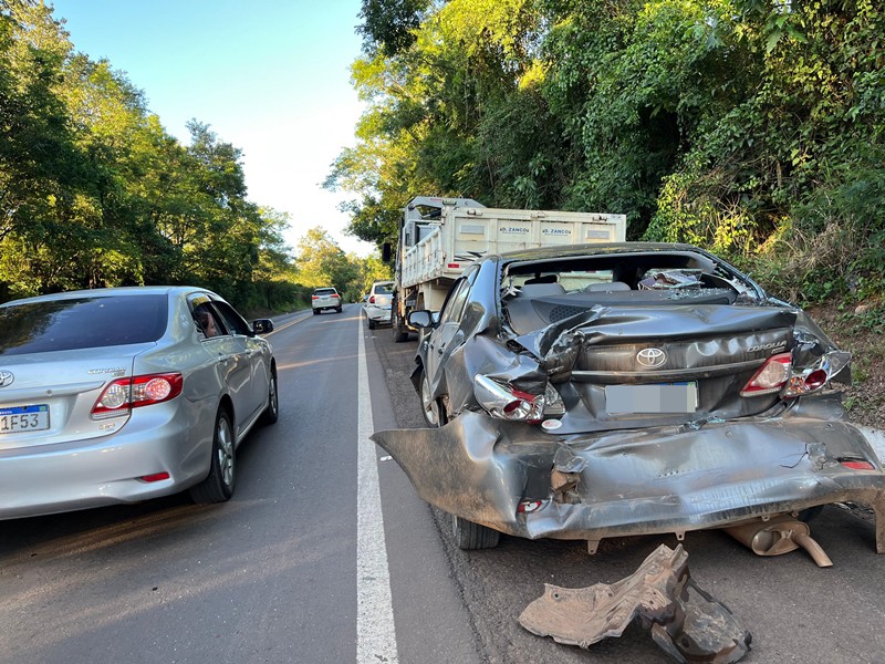 Relatos iniciais dão conta de que havia alto fluxo de veículos no momento da colisão. Os três automóveis seguiam no sentido Seberi-Frederico Westphalen quando a colisão ocorreu. Informações preliminares apontam que o Toyota/Corolla colidiu na traseira do VW/Fox, e foi atingido pelo caminhão que vinha logo atrás.