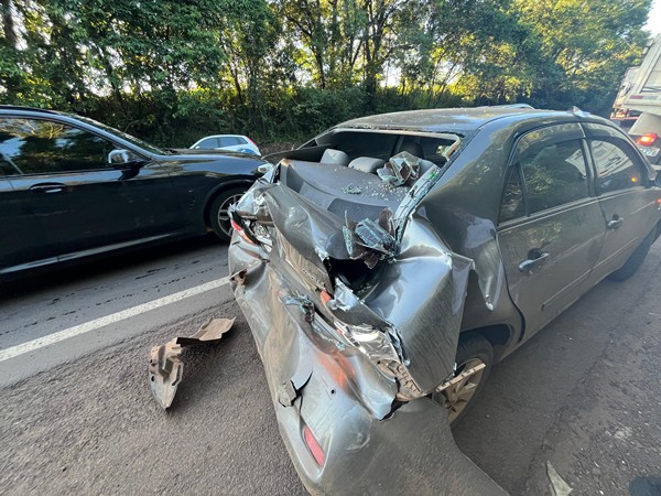 Uma pessoa ficou ferida em um acidente do tipo engavetamento registrado por volta das 18 horas desta terça-feira, 17 de dezembro, em Frederico Westphalen. A colisão ocorreu nas proximidades do quilômetro 37 da BR-386, perto da curva conhecida como volta grande.