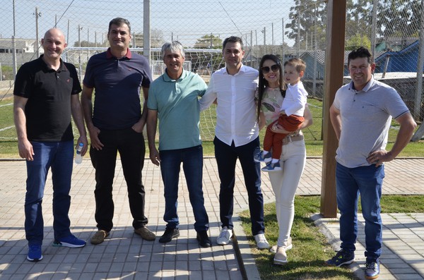 Na tarde deste sábado, 27 de agosto, no Bairro Figueira, em Caiçara, aconteceu a inauguração do “Espaço de Esporte e Lazer Bairro Figueira”. A cerimônia contou com a presença do prefeito, Daniel Coelho dos Santos, do vice-prefeito, Dirceu Antônio Stefanello, do secretário de Esporte, Turismo e Lazer, Elias da Rosa, do vice-presidente da Câmara de Vereadores de Caiçara, Olivo Francisco Bonatti, do prefeito da gestão passada, Márcio José Minuzzi, quando foi dado início à obra, da filha do vereador Gélio de Almeida (in memoriam), Jaine de Almeida, e de Alcebíades Klein, proprietário de parte do terreno que foi doado para a construção do espaço esportivo.