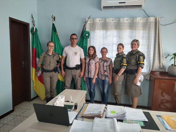 Além das instrutoras do Proerd participou da reunião o Sargento Granetto, comandante do Grupamento de Polícia Militar de Esperança do Sul.