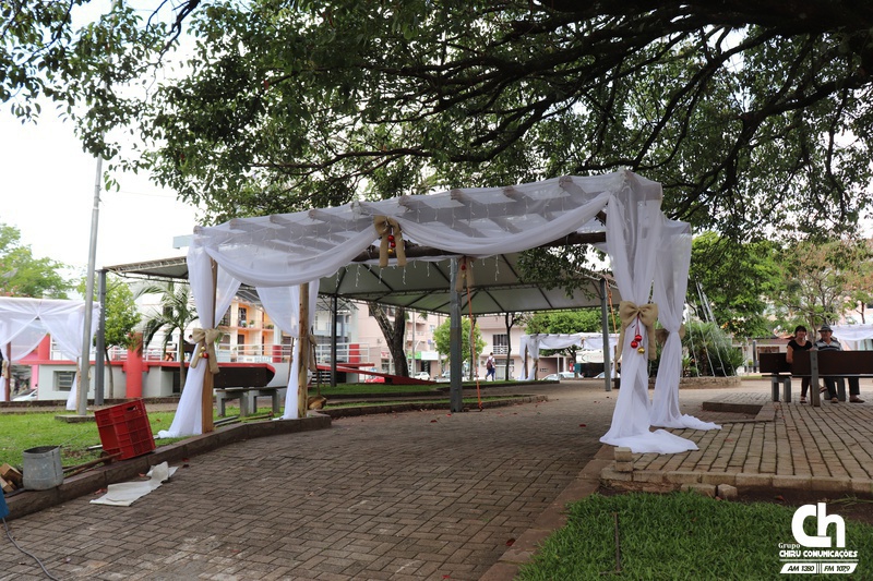 As cores, o encanto e a magia do Natal começaram a ganhar as ruas de Palmitinho. Nesta sexta-feira, 30 de novembro, a Praça Tiradentes, que abrigará a programação um “Brilho de Natal” recebeu diversos itens de ornamentação. Um palco também está sendo montado em frente à Igreja Matriz Santa Terezinha. A primeira-dama de Palmitinho, Cleusa Panosso, coordenou os trabalhos .