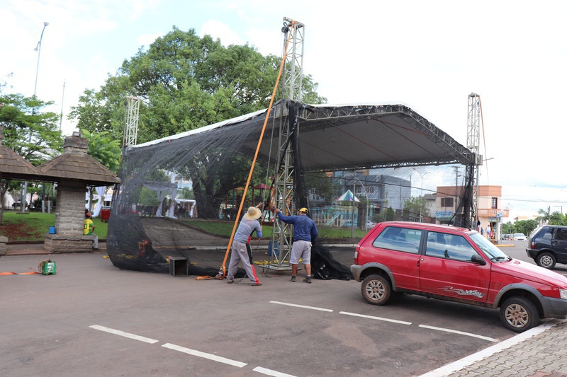 Estrutura para apresentações do Brilho de Natal começa a ser montada