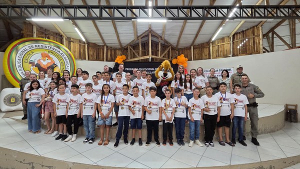 Alunos do 5º ano do Ensino Fundamental das escolas municipais e estaduais de Caiçara, se formaram, na última sexta-feira, 28 de novembro, no Programa Educacional de Resistência às Drogas e à Violência (Proerd), em parceria com a Brigada Militar. Ao todo, 37 alunos concluíram o projeto, que teve início no segundo semestre de 2025.