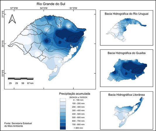 Levantamento mostra índices de precipitações nas três principais bacias do Estado – Uruguai, Guaíba e Litorânea