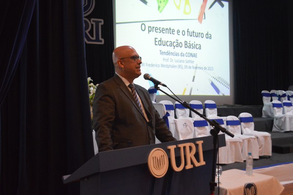 A URI, Câmpus de Frederico Westphalen, realizou, na quinta-feira, 9 de fevereiro, um evento de abertura do ano letivo de 2023 com a temática “O presente e o futuro da Educação Básica: tendências da Conferência Nacional de Educação”. A palestra foi ministrada pelo professor-doutor Luciano Sathler, membro do Fórum Nacional de Educação Básica e do Conselho Deliberativo do CNPq, e contou com a presença de professores e gestores de escolas de toda a região.