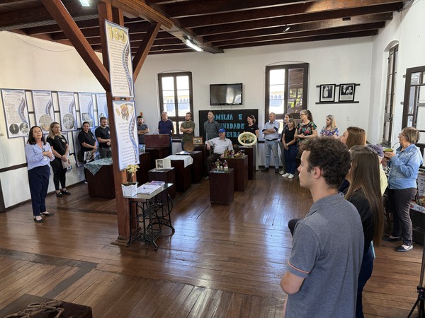 O acervo exposto reúne documentos, fotografias e objetos históricos, incluindo peças de origem alemã, além de painéis que contam a trajetória dos primeiros imigrantes da comunidade de Linha Chapéu. Em um momento especial, descendentes compartilharam memórias sobre os desafios da chegada, a vida em meio à mata, as perdas e a perseverança que moldaram a história da região. Entre os destaques estiveram a presença de “Vovó Frida”, de 102 anos, e o trabalho de pesquisa de Ana e Agostinho, que resultou em livro e acervo disponibilizados ao público.