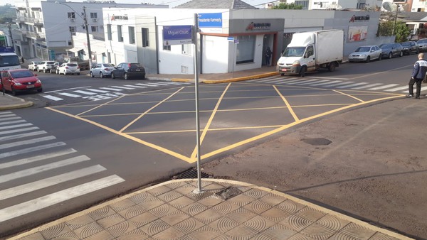 A Administração Municipal de Frederico Westphalen, através do Departamento de Trânsito e Mobilidade Urbana, realizou nessa semana a pintura de uma faixa de conflito na rua Presidente Kennedy, cruzamento com a Miguel Couto.