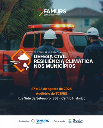 A importância da preparação local diante de desastres climáticos e emergências será o foco central do 1º Seminário Estadual de Defesa Civil e Resiliência Climática nos Municípios, promovido pela Famurs nos dias 27 e 28 de agosto, no Auditório do TCE/RS, em Porto Alegre. O encontro reunirá representantes de órgãos federais, estaduais e municipais, além de especialistas de diferentes áreas, para debater estratégias, protocolos e o papel da gestão pública frente aos desafios climáticos crescentes no Rio Grande do Sul.