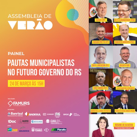 Nesta quinta-feira, 24 de março, a Famurs realiza a abertura da tradicional Assembleia de Verão. A edição deste ano será realizada na Associação dos Amigos da Praia de Torres (SAPT), oportunidade em que acontece o primeiro encontro com os pré-candidatos ao governo do Rio Grande do Sul.