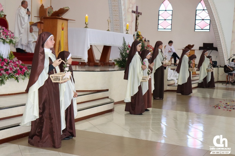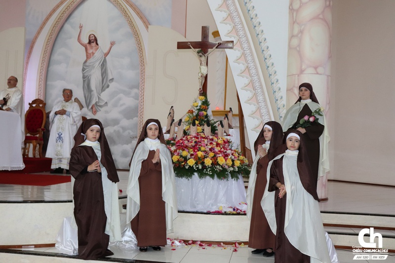 Ainda durante a celebração, meninas caracterizadas como Santa Terezinha distribuíram rosas aos fiéis que participaram da celebração. Para os devotos de Santa Terezinha receber uma rosa significa alcançar uma graça.